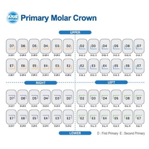 KITS Intro kit: 48 crown sizes, 1 crown for each size. Assorted kit: 96 crowns, 2 for each size of 48 different sizes.